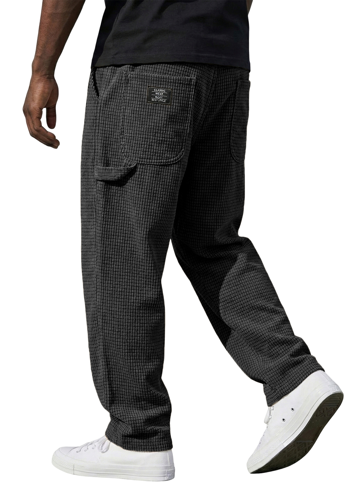 Pantalones de ocio para hombres de tela de waffle de corduroy vintage con etiqueta de cuero bordada
