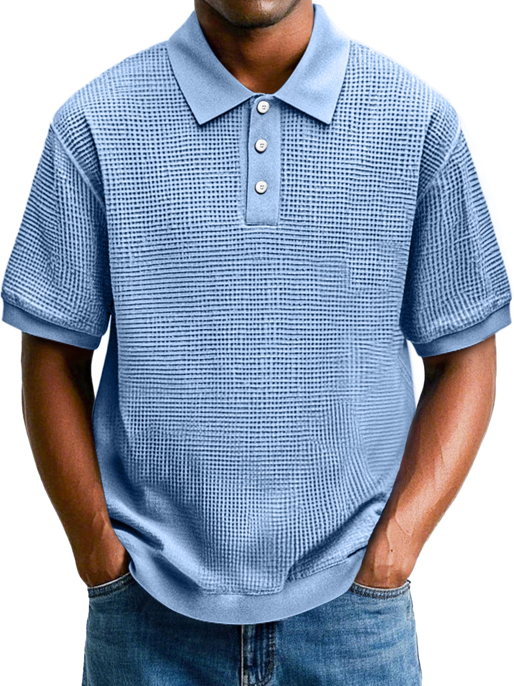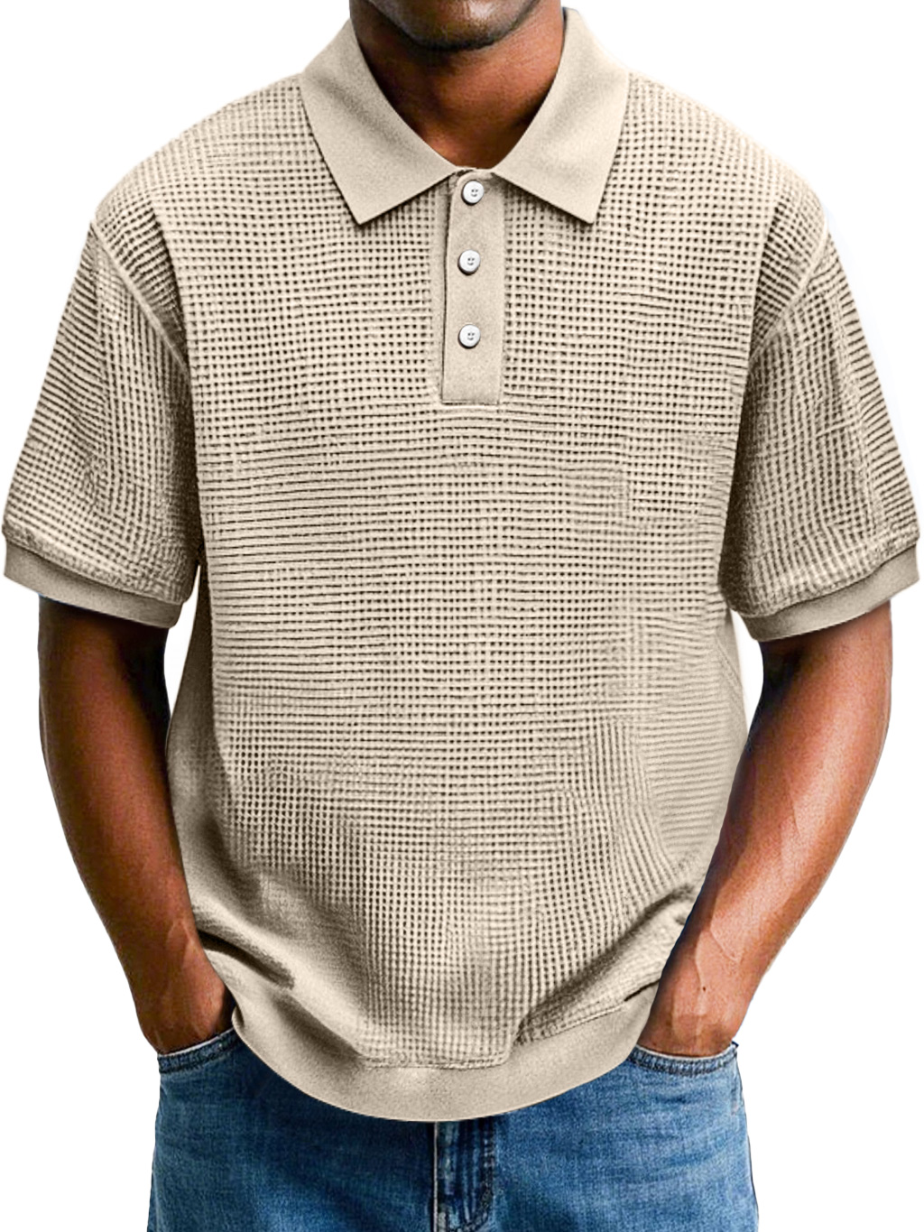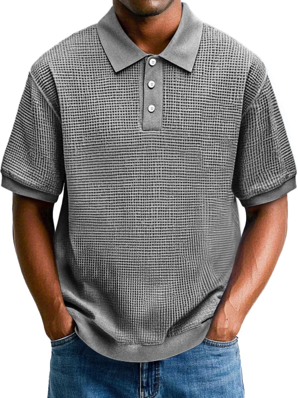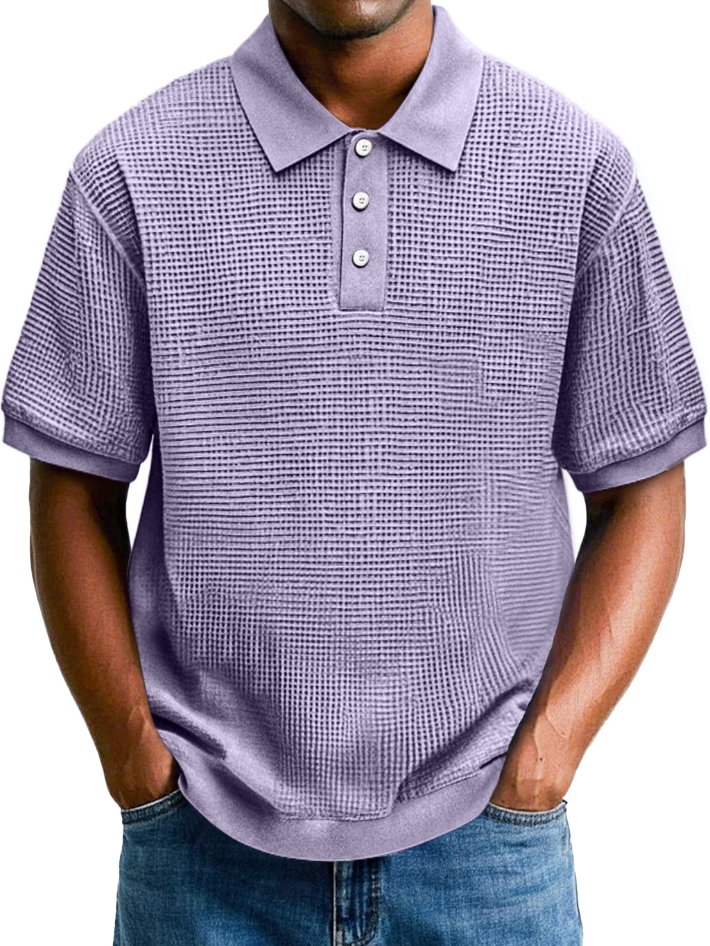 Moda masculina polo de manga corta con reverso de gofre y comodidad.